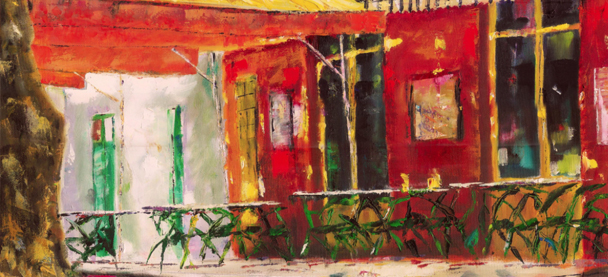 De basis voor dit werk was een klein zwart-wit fotootje in de krant. Hierop stond een verlaten wooncomplex in